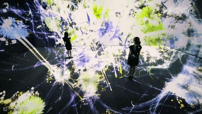 你可以自由地在这个多媒体演艺装置空间中走动,同时欣赏作品。整个动画是通过电脑程序不断地描绘,来力求让你感受不一样的沉浸式体验。这个多媒体演艺艺术展所要展示的也是一种思想:“超主观空间”是存在的,它是对传统绘画艺术空间概念的一次吸取创新。三维的立体世界在二维平面上展示也能让观众感受到深度空间的存在,而且效果很棒!