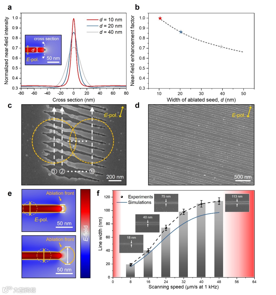 在这项工作中,研究团队展示了通过飞秒激光脉冲辐射损伤产生的初始纳米孔作为引发光学近场定向增强的“种子结构”来实现超高精度的远场激光直写。