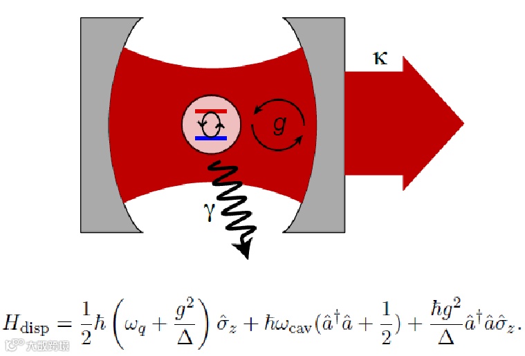 其次,谐振腔中有光子的话,原子能级的位移量会随着光子数增加而线性增加,这就是“AC-Stark效应”;反过来,原子上有没有激发,对谐振腔频率也会发生不同的影响,导致谐振腔频率发生位移。 -