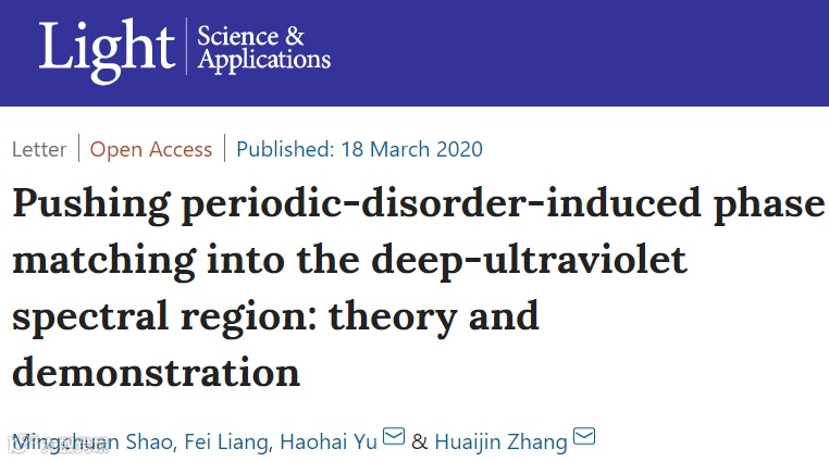 相关成果以“ Pushing periodic-disorder-induced phase matching into the deep-ultraviolet spectral region: theory and demonstration ”在线发表在国际光学顶尖期刊《 Light: Science & Applications 》上。