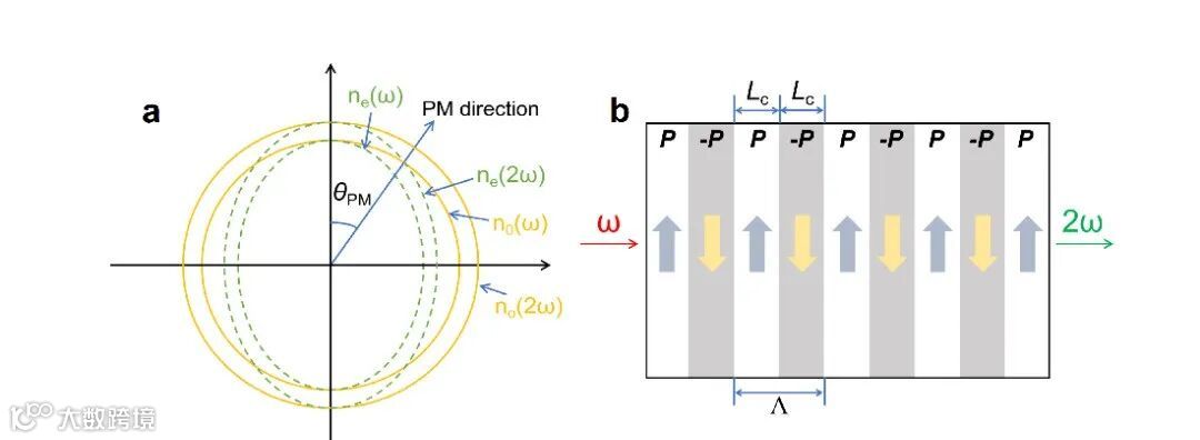 为获得有效的频率变换,非线性过程中参与的光子必须遵守动量守恒,即为相位匹配条件。由于材料的色散特性,不同波长的光波在非线性介质中传播时,通常会产生相位失配,难以获得高效率的非线性频率变换。