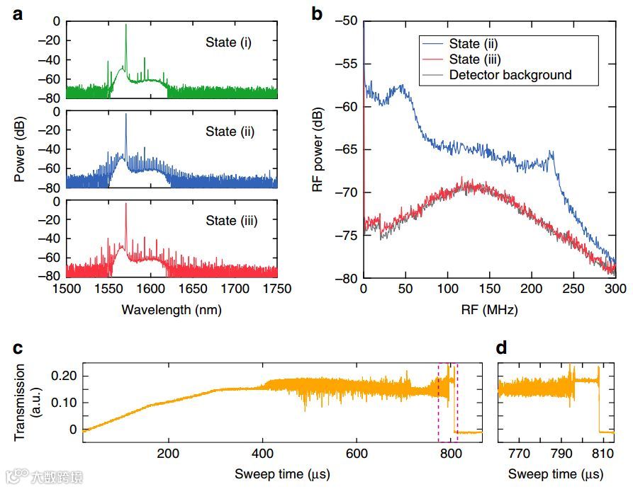 此外,研究人员研究了拉曼散射对克尔频率梳产生的影响,观察到拉曼效应与基于三阶非线性的FWM过程之间的非平凡相互作用形成的克尔频率梳。