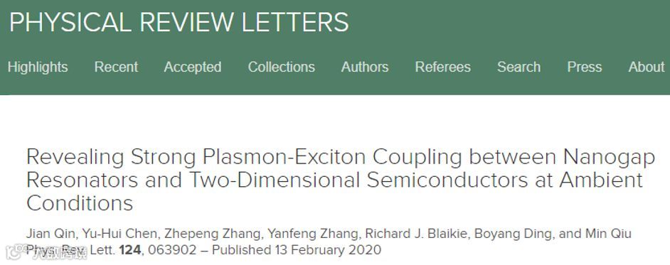 西湖大学仇旻教授团队和新西兰奥塔哥大学丁伯阳(Boyang Ding)博士合作,联合浙江大学、北京理工大学、北京大学相关团队,实现了常温下局域等离子谐振和二维半导体激子的强耦合,并且发现参与耦合过程的有效激子的数目可以控制在个位数(N<10)。 相关成果发表在近期的《物理学评论快报》 [Phys. Rev. Lett. 124 063902 (2020)]