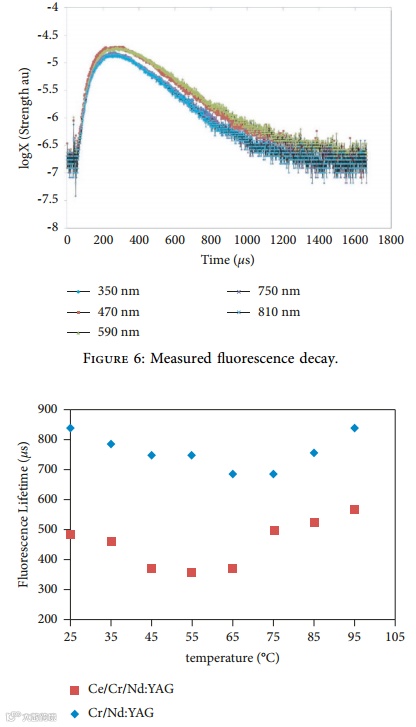 近期,日本关西大学 T. Saiki 研究团队开发了一种 Ce:Cr:Nd:YAG 陶瓷激光器,研究发现 Ce:Cr:Nd:YAG 中 Nd3+ 的荧光寿命与温度成正比,且掺入 Ce3+ 后可提高激光器的激光输出能量,其最大激光输出能量为 73 mJ,峰值功率为 330 W。相关研究成果以”Rod-type Ce:Cr:Nd:YAG ceramic lasers with white-light pump source” 为题发表在International Journal of Optics上。