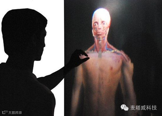 研究人员还在“TeleHuman”上使用了一款名叫“BodiPod”的应用,它能建立人体交互的3D解剖模型,对话者能够通过手势操作剖开说话者的表皮观察肌肉、神经和骨骼结构。这项应用有望运用在将来的远程医疗之上。