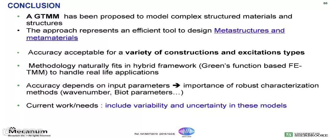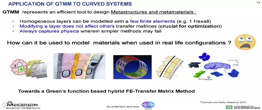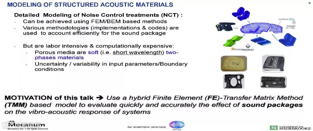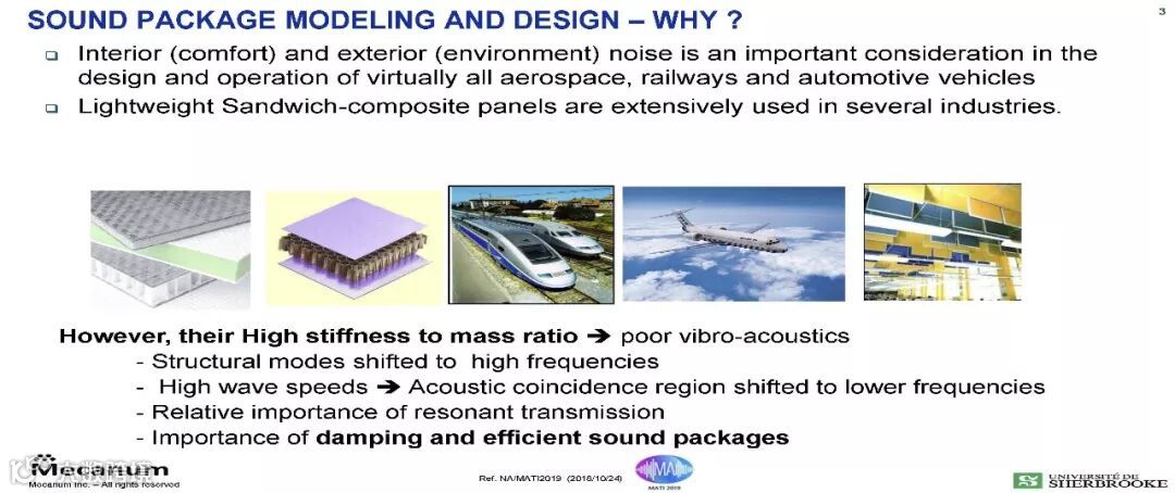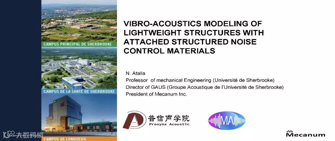材料声学技术与产业化发展国际论坛(MATI 2019)Sherbrooke大学教授、Mecanum公司创始人、普信®声学院首席国际专家Noureddine Atalla先生全体会议报告(Vibro-acoustics modeling of lightweight structures with attached structured noise control materials)。