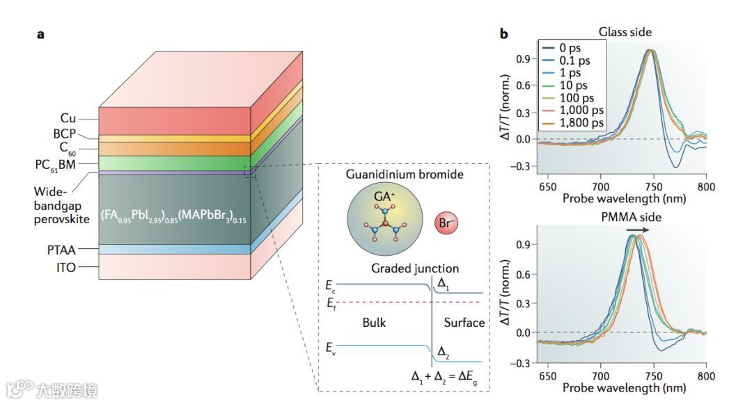 图3. 渐变结钙钛矿太阳能电池器件结构和渐变结的时间分辨光谱