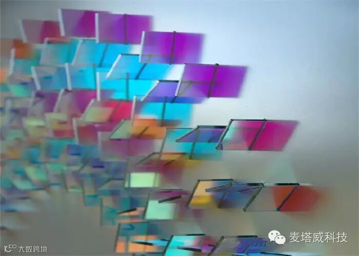 玻璃片是折射光的好媒介,Chris Wood把不同颜色的玻璃片交错在一起,摆成一个阵型,一切就绪,坐等光来~~