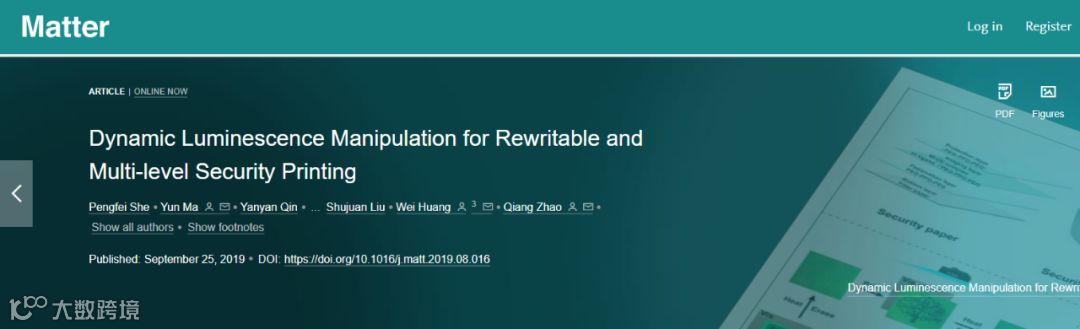 She, Pengfei, et al.Dynamic Luminescence Manipulation for Rewritable and Multi-level SecurityPrinting. Matter (2019).