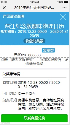 4、截图或复制兑奖码,点击下方“联系客服兑奖”,发送截图或兑奖码即可领取日历啦~