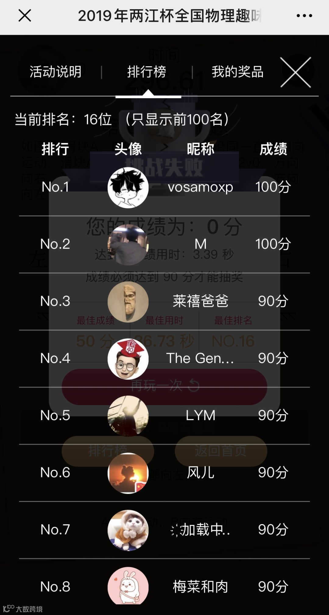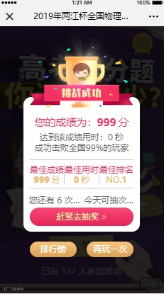③答对九题者只有一次兑奖机会,但活动期间均可刷新答题成绩及答题时长,霸占成绩排行榜。