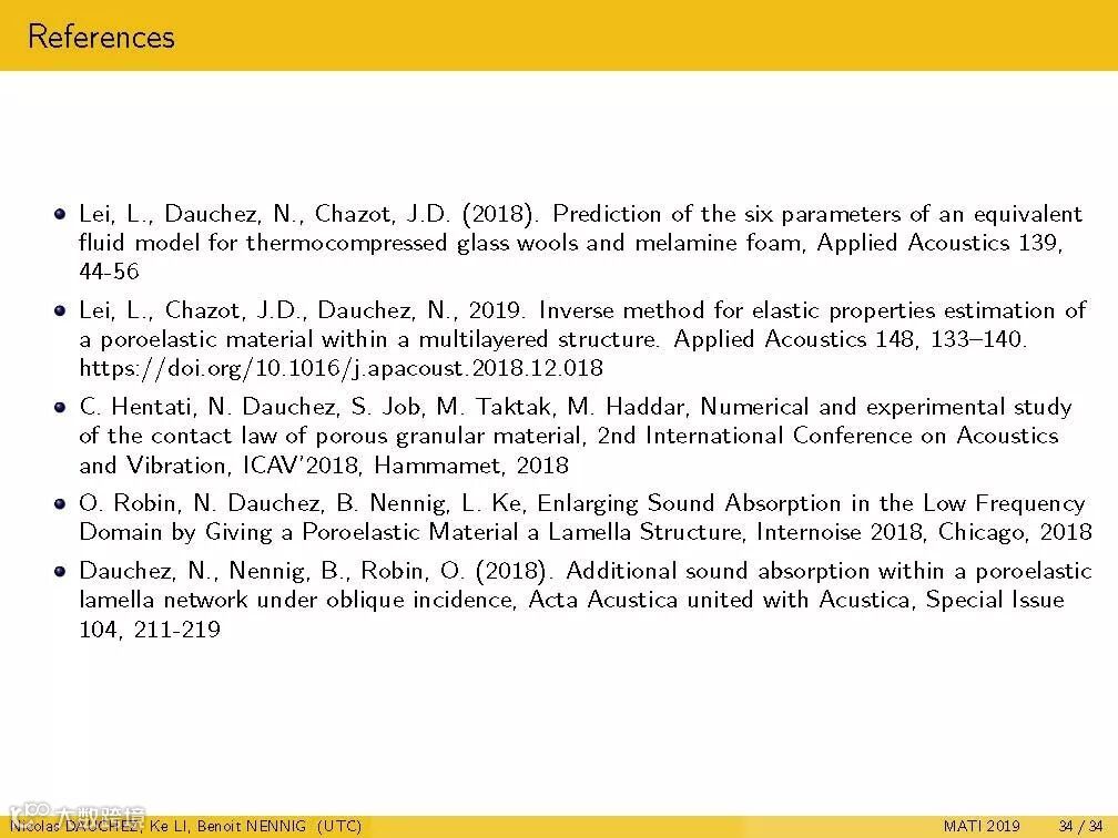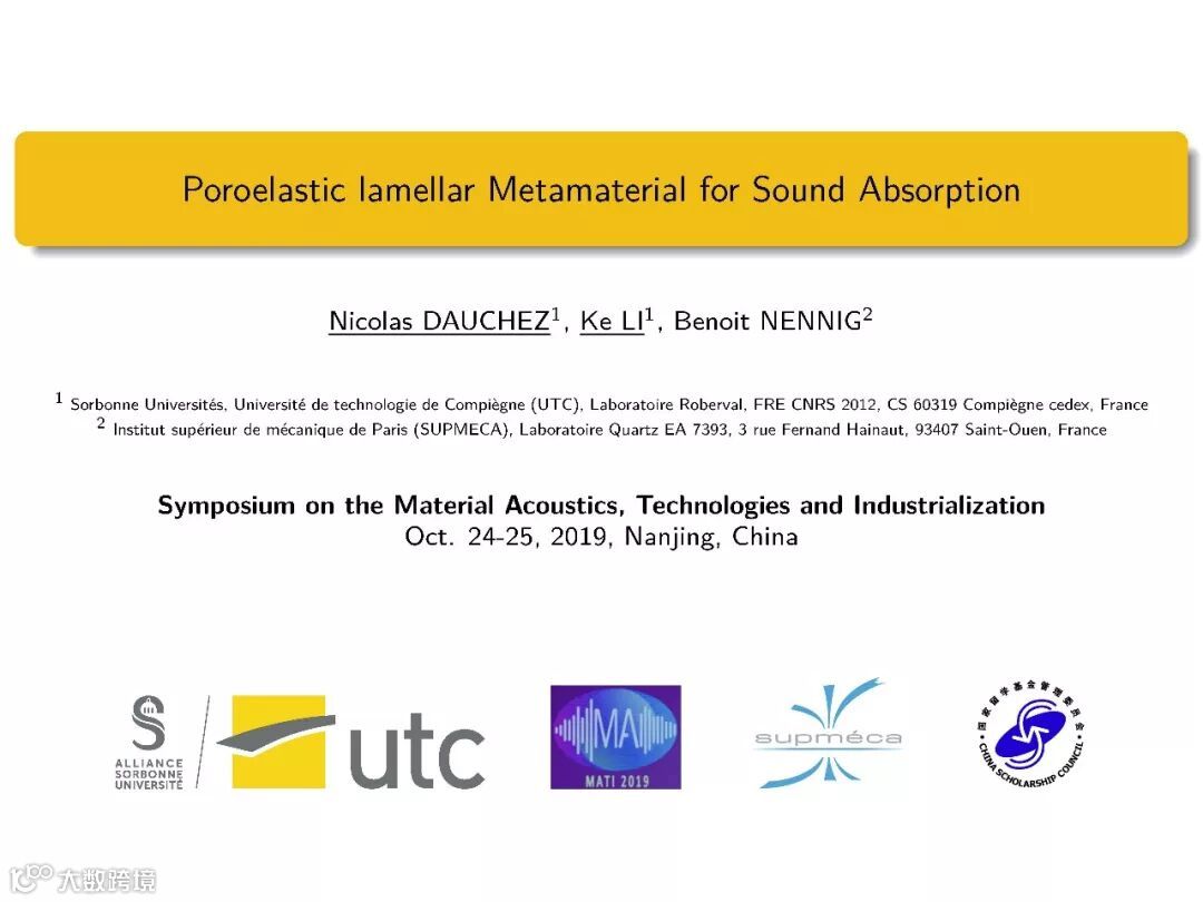 材料声学技术与产业化发展国际论坛(MATI 2019)普信®声学院国际专家Université de technologie de Compiègne法国贡比涅技术大学Nicolas Dauchez教授和李珂博士的大会主旨报告(多孔弹性多层吸声超构材料,Poroelastic lamellar metamaterial for sound absorption)。