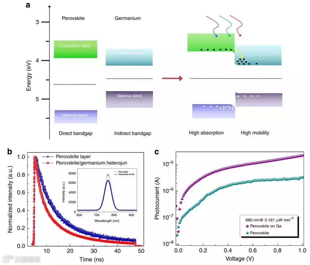 近日,湖南大学胡伟教授团队成功研制了高性能、宽频带异质结光电探测器。该异质结构器件基于均匀且无针孔的钙钛矿薄膜,该薄膜镶嵌于单晶锗层上;与单一材料的光电探测器相比,钙钛矿/锗光电探测器表现出更强的性能和更宽的光谱特性。相关成果以“Germanium/perovskite heterostructure for high-performance and broadband photodetector from visible to infrared telecommunication band”为题近日发表在《Light: Science & Applications》上。