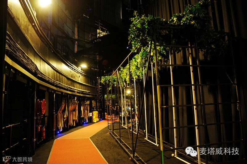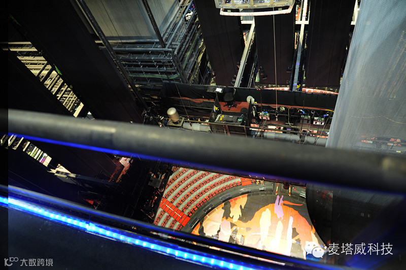 同时,运送道具也在这个位置,当中令观众叹为观止的高难度体操“人造吊灯”以及“俄罗斯秋千”等,就在这里送出去。站在17 米的高空,大约6层楼高的位置,从扶手的护栏绳往下望,有些畏高的感觉。这一望,终于揭开了心中藏有多时的问号!