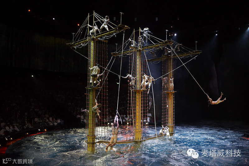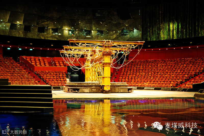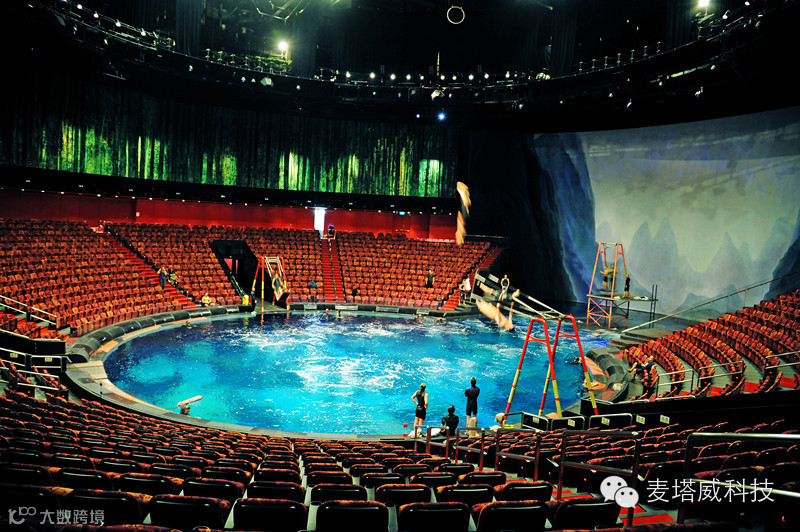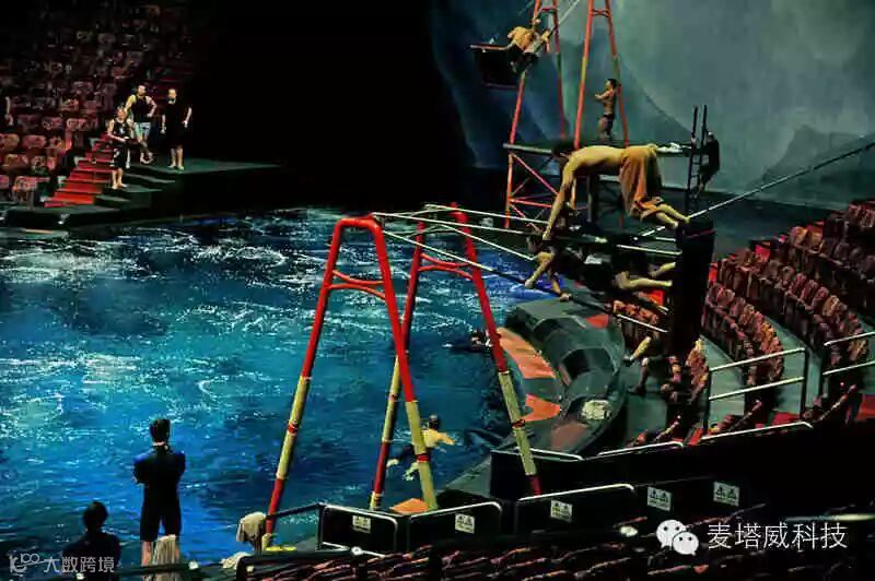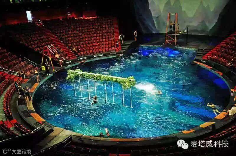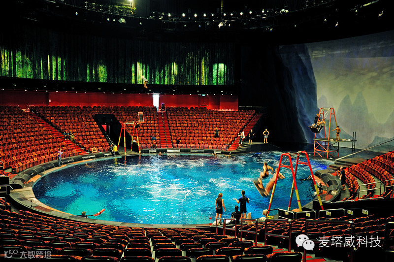 看这场演出的一些资料,会是如此的震撼:耗资超过20亿港元(超过25亿美元),打造了这个专用的可容纳2000名观众的剧院。剧院拥有全球最大的商用水池,直径长约160叹,水深约26叹,水池容量约为370万加仑,是奥运会比赛标准泳池容量的五倍以上。约有8个自动喷泉及约11个10吨升降台,可由水池瞬间变回陆地舞台。用了两年时间在五大洲面试了超过700名表演者、音乐家及杂技演员,最后筛选出约77名表演者,包括约32名杂技演员、约12名组成坦桑尼亚金字塔群的成员、约6名软骨艺术师、约8名女舞蹈员、约4名音乐家、约7名电单车特技人及约4名领衔表演者,另约4名后备演员。约130名制作人员、技术人员及专业潜水人员支援。