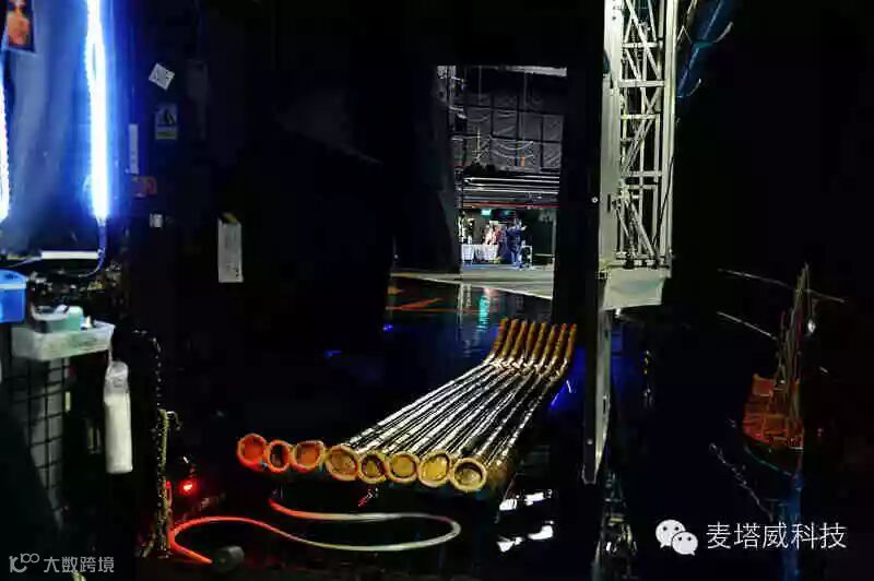 水池的入口处,设立了很多铁管在旁边,这是为了节省演员体力,他们基本上不用游水就可以爬过去,到达水池深处相应的出场位置。