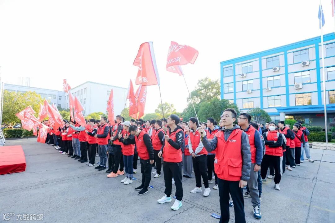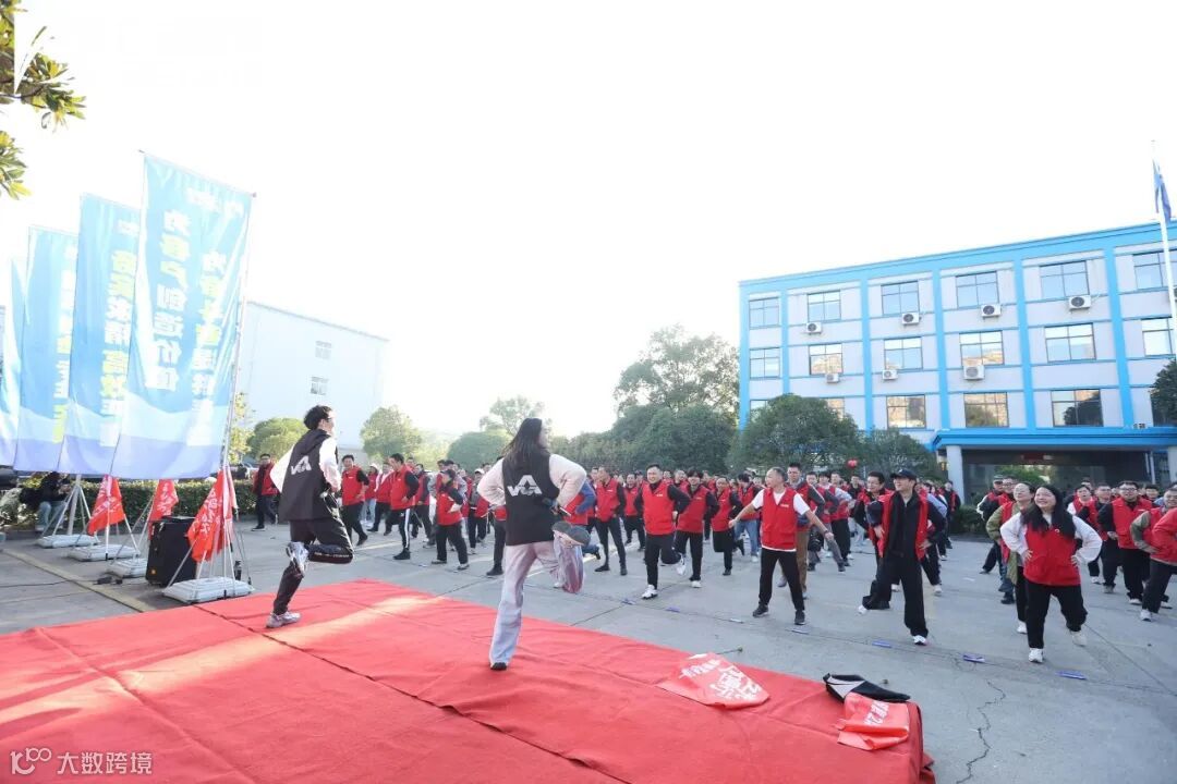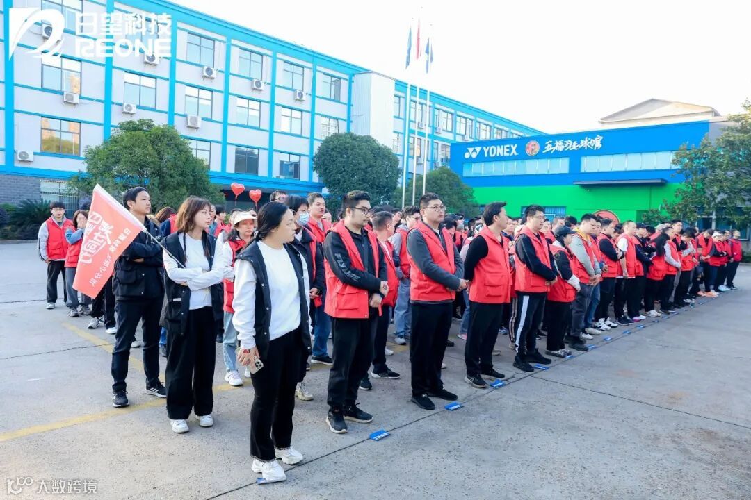 清晨的天台工业园,鼓声雷动,统一的红色马甲汇成一片流动的“红海”。“咚咚咚!咚咚咚!”随着主持人清亮的声音响起,舞台两侧的大鼓被敲响,厚重而有力的鼓声穿透园区,直抵人心,鼓槌落下的瞬间,仿佛敲在了每一位日望人的心跳上。