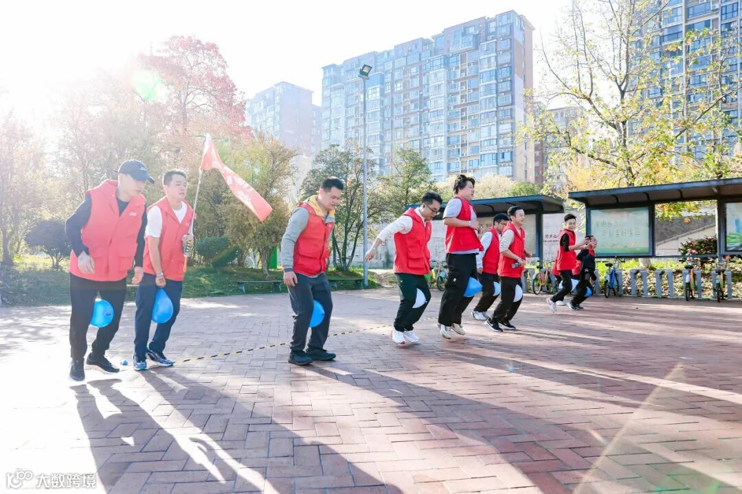 在五桥打卡区里,“跳一跳”游戏早已布置就绪,作为最后一个打卡点,这里既是对体力的考验,更是对团队协作的终极练兵。在队长的部署下,队员们立刻行动起来。当最后一名队员顺利蹦到终点,全队欢呼着得到通关印章后,大家汗湿的脸上满是成就感。