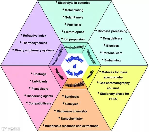 突破性:具有高热稳定性、宽液态温度范围、可调酸碱性、极性、配位能力等。