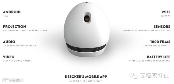 Keecker公司发布了一台首款搭载Android系统的投影机器人——Keecker,这款投影机器人可以解决许多传统投影设备在使用上带来的不便,如转换角度、背景更换、投放距离等各种问题。
