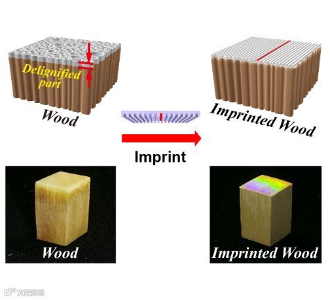 提升天然材料的功能和性能,拓展其现代应用,将对社会的可持续发展起到重要的推动作用。木材具有良好的生物降解性,且来源丰富。然而,长期以来,植物作为生命体受限于生长尺寸、缺陷、兼顾生命需求等,其性能不能满足现代需求,从而使得其应用长期局限于传统的建筑、家具等领域。表面微纳结构是很多光学、光子学等器件的基础,在木材的表面实现微纳结构的调控,将实现其光学、光子学等材料和器件的应用,发展完全生物降解、可抛弃的环境友好材料与器件。然而,木材是由纵向排列的细胞构成的多孔结构,微米尺度的粗糙表面难以形成纳米结构。此外,木材的主要构成材料天然纤维素没有热塑性。因此,在木材表面实现精密的微纳结构仍是一个挑战。