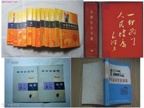 我是在“文革”中受的中小学教育。那时课堂中只能学到最最最基本的东西。比如化学讲的是氮磷钾肥料,几何讲丈量土地等等。更多的知识主要靠课外读物。当时科学方面的课外读物非常少。只有《十万个为什么》、《科学小实验》、《少年晶体管收音机》、《赤脚医生手册》。这几乎就是所有的科学书。当时对科学感兴趣的学生可能都读过这几本书。那时没有考试做作业的压力,有大量的时间瞎捣鼓,做自己喜欢的事情。除了能把这几本课外书通读好几遍之外,还装收音机(有人甚至装过电视),做飞机模型,修自行车,砸电池,做火药(一硝二磺三木炭),养鸡,等等。这算是“文革”时当学生的幸福时光。