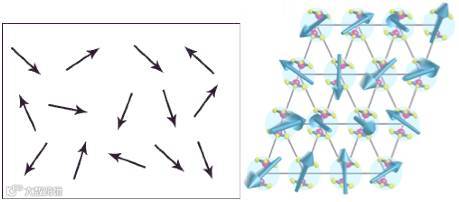 磁性材料的原子带有自旋,其可以用一个箭头来表示。低温下,这些自旋可以自发的排成有规则的阵列,从而得到一个自旋有序态。自旋都指同一方向的自旋有序态叫铁磁态。自旋上下交叉排列的叫反铁磁态。自旋有序态破坏了自旋旋转对称性,是一种对称破缺态。