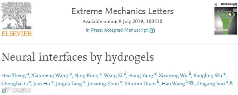 植入的神经接口是生物学和医学的基础,但现有的接口很难与神经元兼容。最近,哈佛大学锁志刚院士科研团队、浙江大学Wang Hao团队和西安交通大学科研团队合作,开发了一种水凝胶神经接口,它在化学、机械和电学上模拟神经元的生活环境,比现有接口引起的免疫化学排斥反应少得多,并在体外和体内记录来自大脑的高质量信号。在光遗传学实验中,水凝胶的单个纤维能够同时进行光刺激和电记录。还进一步制作了一种弹性密封的水凝胶电缆,冷冻水凝胶,并将硬电缆插入小鼠的大脑中。在大脑内部,水凝胶融化并收集神经信号。该研究成果以题为“Neural interfaces by hydrogels”的论文发表在Extreme Mechanics Letters上。
