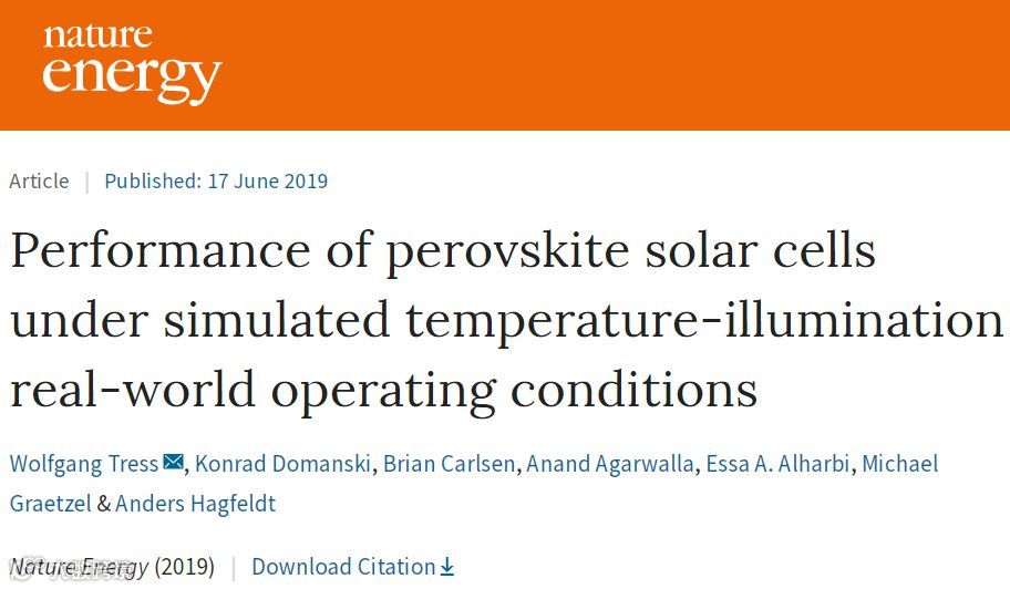 2. Wolfgang Tress et al. Performance of perovskite solar cells under simulatedtemperature-illumination real-world operating conditions. Nature Energy 2019.