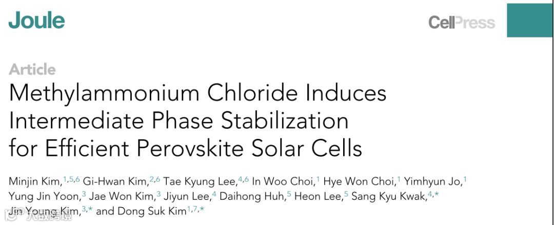 Kim,M. et al. Methylammonium Chloride Induces Intermediate Phase Stabilization for Efficient Perovskite Solar Cells. Joule, 2019