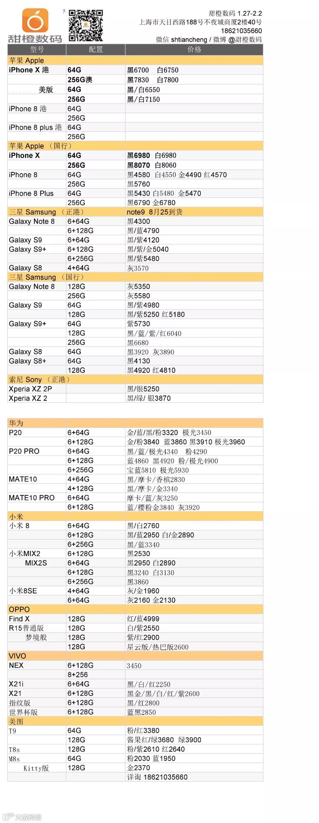 8 9月份,iPhone X 价格开始出现下滑态势,国行版机型本周保持稳定,iPhone 8 及 plus 小幅波动;三星 Galaxy S9 港版国行版均有 100 元走低,国行版 S8+ 也有大幅走低;小米各款机型价格稳定;索尼继续稳步走低。
