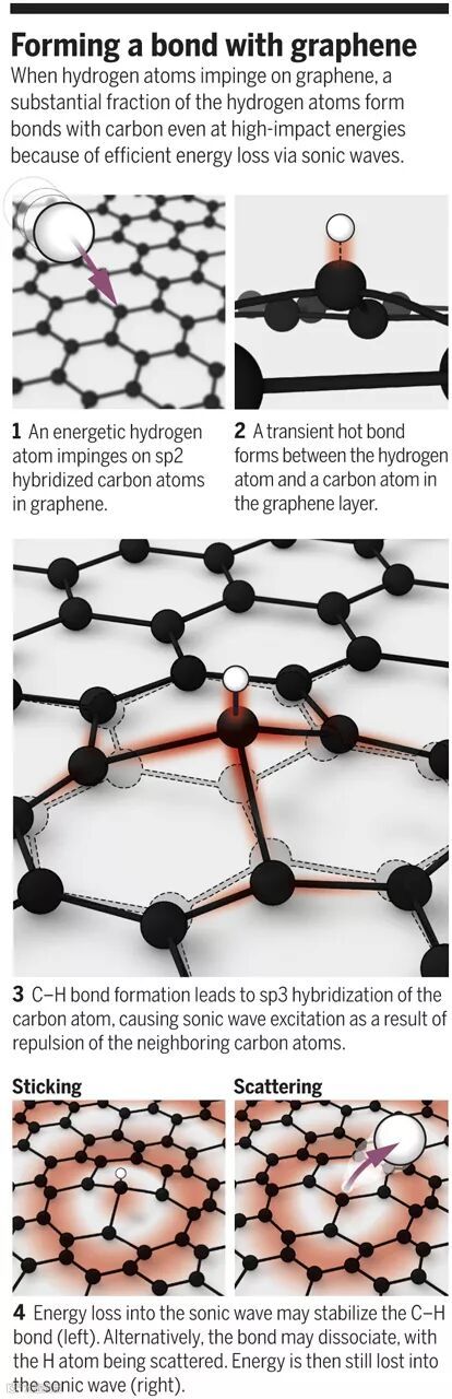 2019年4月26日,来自德国、美国的科研团队发现,这种不对称性还会导致在石墨烯上形成C-H键时,会发生异常的有效能量损失路径。探索C-H键形成将成为未来调控石墨烯性质的新策略。这项成果发表在最新的Science杂志,并被选为封面文章。