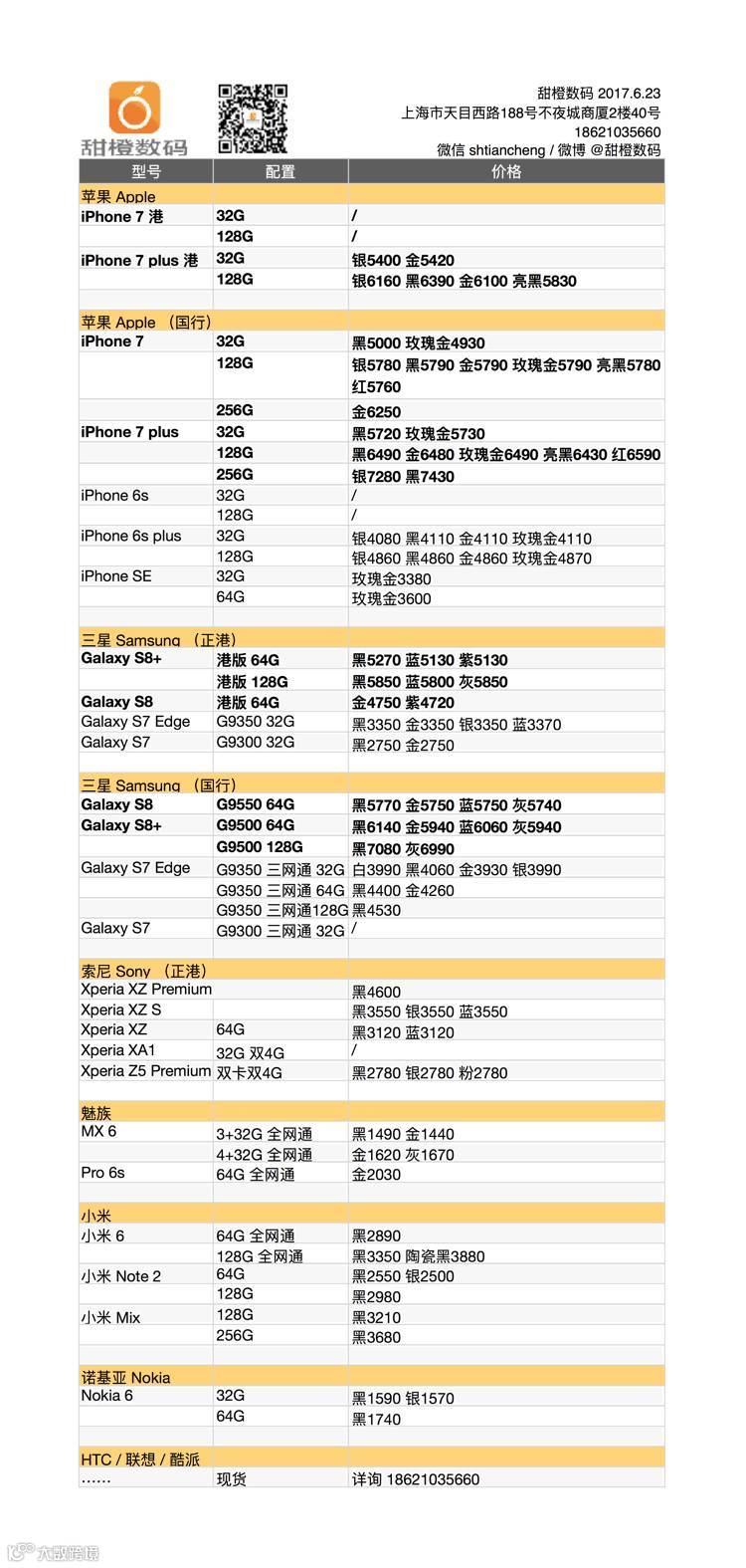 iPhone、Galaxy、Xperia 这些机型周末前价格稳定;小米 6 价格小幅走低,陶瓷黑版价格目前稳定,小米 MIX 稍有反弹。