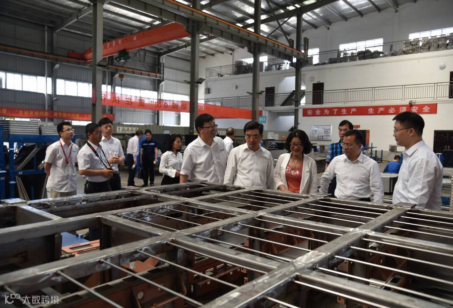 ▲ 集团董事长彭军女士带领考察组参观日望精工生产车间