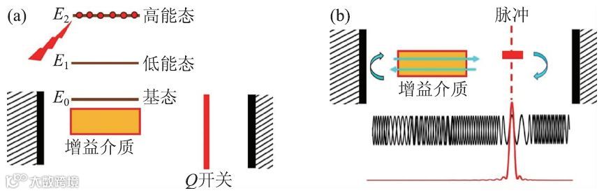 激光出现后,如何产生更强的激光自然成为研究的重点。让激光以脉冲——而不是以连续波——的方式输出可以得到更大的峰值强度。下面简要介绍两种常用的产生脉冲激光的方法:Q开关[2]和锁模[3]方法。