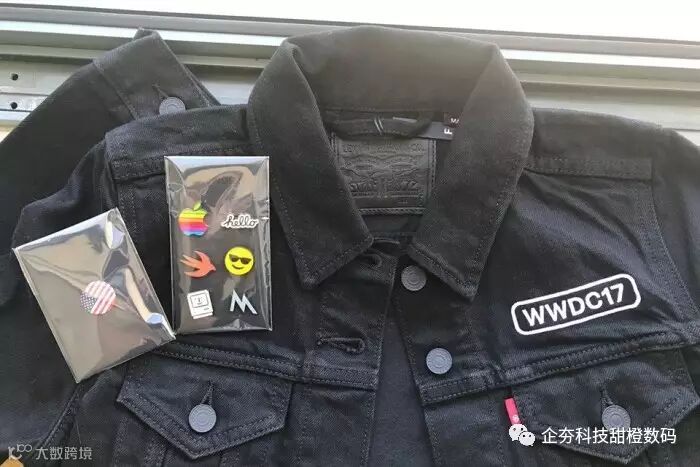 苹果每年一度的开发者大会WWDC 17正在圣何塞召开,往年大会为参加者分发的周边服饰通常都以注重舒适为主,而今年大会的周边服饰却在时尚方面加分不少,据外媒报道WWDC 17的周边服饰为定制版李维斯黑色牛仔卡车司机夹克,而且还附赠了六枚复古元素的APPLE标志加参加者国别的圆形徽章别针。