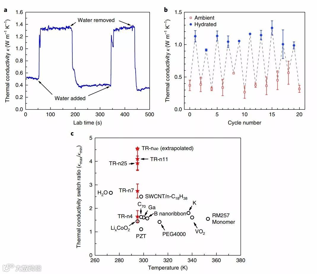 b,在20个循环中测量的TR-n11热导率,显示出很好的开关重复性能力;