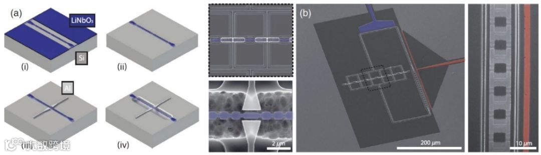 在传统的通信系统中,执行微波信号处理的紧凑型设备无处不在;而新兴的量子技术使用了微波频段的光子、声子(Phonons)对信息进行存储和传递,这在未来的紧凑型高速通信中(例如5G通信)有可能发挥重要的作用。这其中,能够对声子进行精准控制的声子晶体(phononic crystal)是实现量子声学(quantum acoustics)最有希望的途径之一。最近,来自美国斯坦福大学的Amir Safavi-Naeini课题组的研究人员第一次将超导电路耦合到声子晶体纳米微腔,为多功能、集成化的量子信息处理开辟了新途径。他们利用纳米微加工技术,将声子晶体图案制备到铌酸锂(LiNbO3)薄膜上,形成了能够“捕获”6GHz声波的声子缺陷模式。由于铌酸锂是强压电材料,器件所捕获的声波产生了振荡电场,再通过使用超导共振电路(superconducting resonator circuit)来“拾取”这些小的波动,也就实现了声子和光子(即微波)之间的耦合作用。研究人员利用磁场调节超导电路中的约瑟夫森结(Josephson junction),导致超导微波谐振频率的变化,从而实现了声子和光子之间耦合作用的精确可调。铌酸锂是一种优秀的电声和纳米光子学材料,可以帮助我们开发出更为高效的“微波-光学”转换器,同时也有助于超导量子计算机开发出高度连贯、高度集成的存储元件。相关工作发表在近期的《Physical Review X》上。