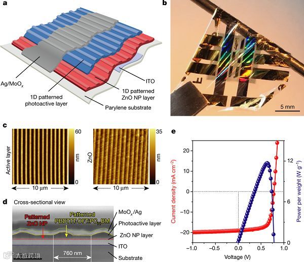 Self-powered ultra-flexible electronics via nano-grating-patterned organic photovoltaics, (Nature, 2018, DOI: 10.1038/ s41586-018-0536-x)