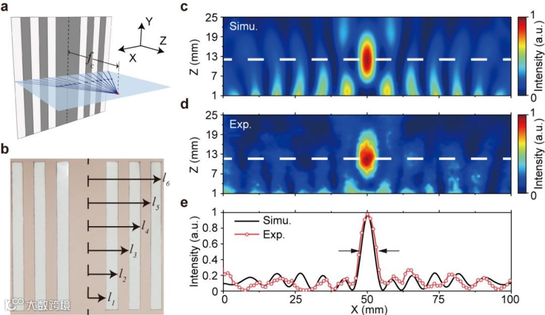 a) 条形图案调制声学聚焦示意图;