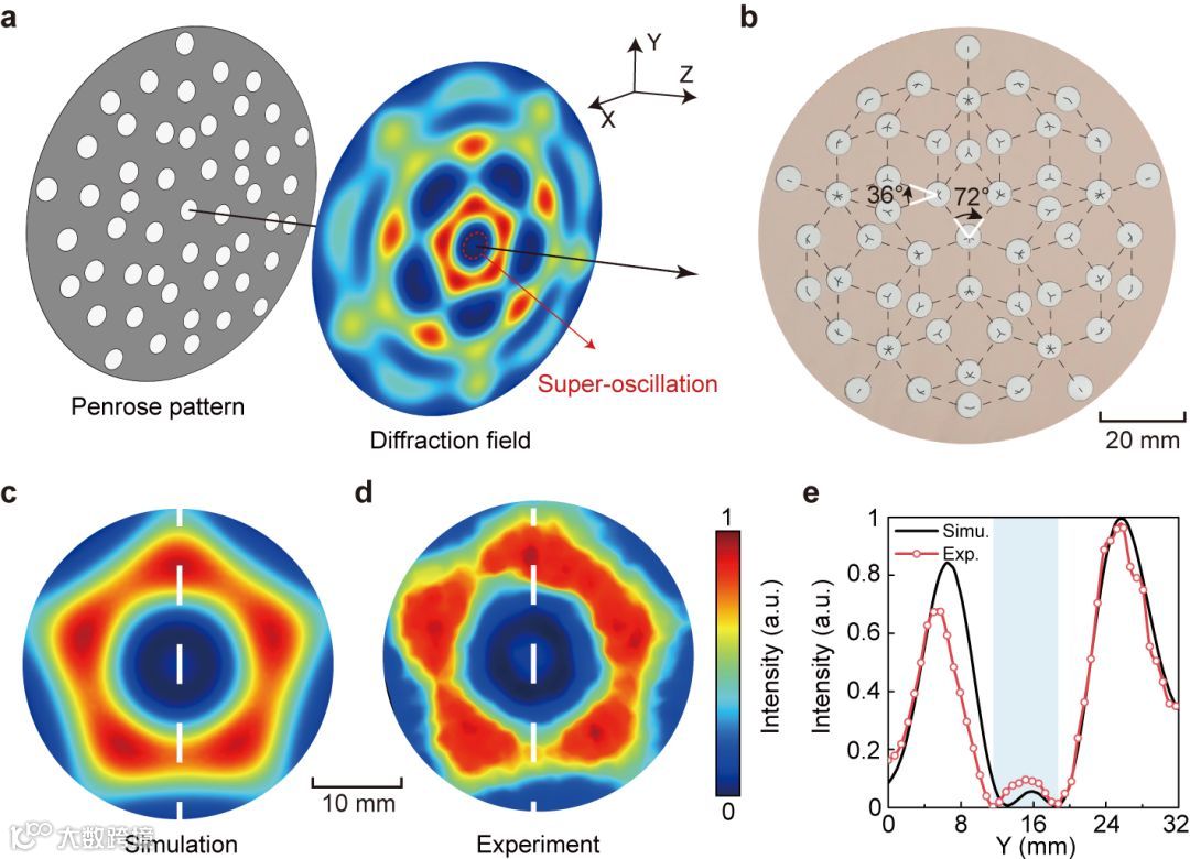 a) Penrose晶格图案调制声学超振荡示意图;