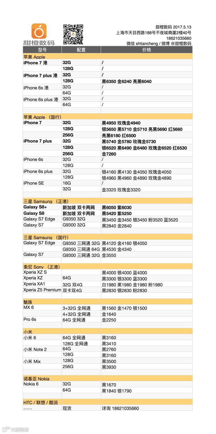 三星 Galaxy S8/S8+ 周末价格小幅走低,适合入手尝鲜;iPhone 7 及 plus 则没有在这个周末迎来更好价格,仍然较为坚挺;小米等国产品牌稳定。