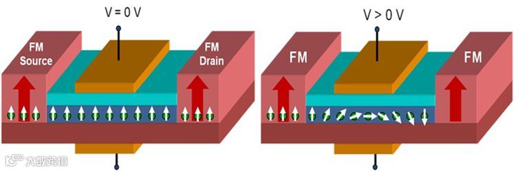 图3. 自旋场效应晶体管SFET 的结构与工作原理。