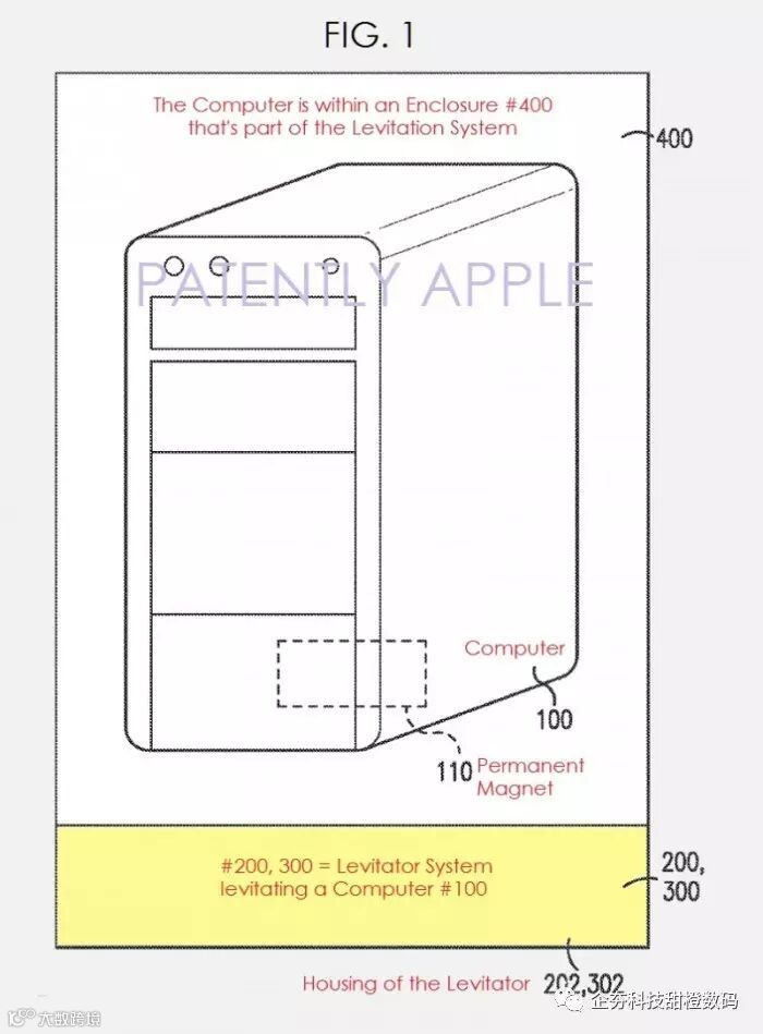下面的专利图1描述了一套悬浮系统,该系统包括一台主机电脑悬浮于悬浮器之上,而整个电脑被至于一套悬浮系统之中。