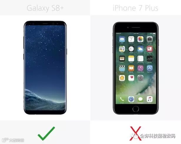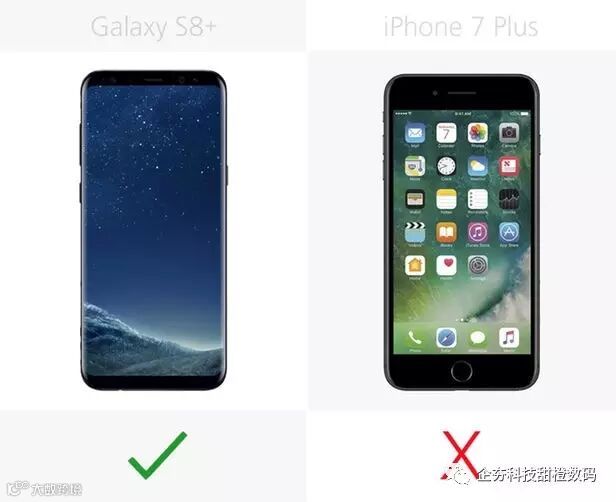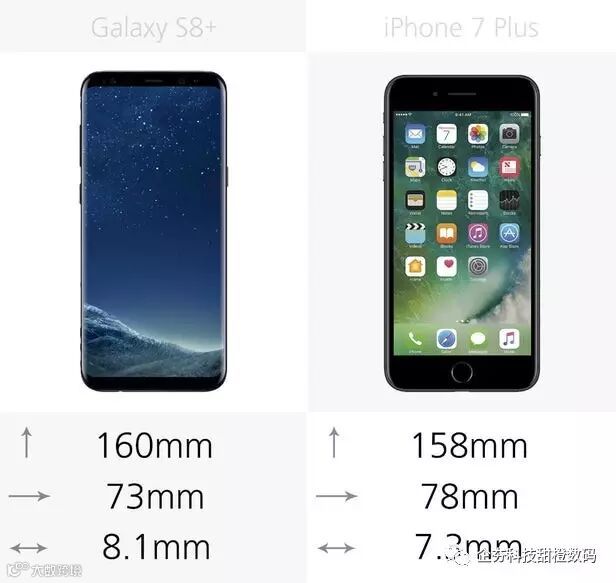 Galaxy S8+相比较iPhone 7 Plus高1%,窄6%。不过在厚度上Galaxy S8+要厚11%。