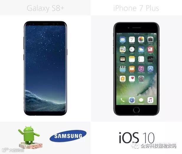 Galaxy S8+运行基于Android Nougat的TouchWiz系统,而iPhone运行iOS 10系统。