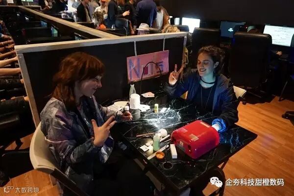 值得注意的是,网吧中妹子们也不少,因此便有人瞅准时机在场内摆起了美甲店以及桌游区,和国内的网咖比较像。