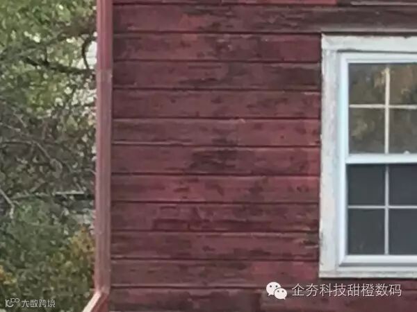 在光照充足,迷人的房子外面,两个手机拍摄出来的照片其实效果都相当不错,当然,一旦我们放大细节之后,我们看到 iPhone 7 Plus 做了更伟大的工作,它保留了房子木墙以及左边树叶的细节。