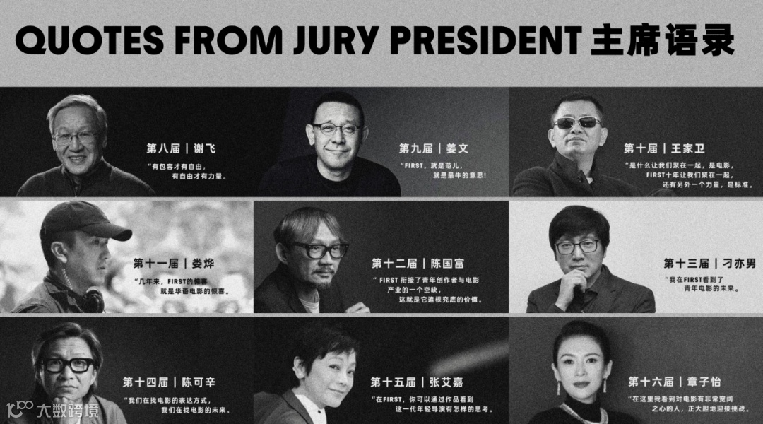 十六年来,已有数百位电影新锐力量在FIRST影展收获了电影艺术上的尊重和肯定。他们包括范立欣、马莉、郝杰、文牧野、忻钰坤、李非、王一淳、德格娜、马凯、张涛、张大磊、蔡成杰、周子阳、詹京霖、仇晟、陆庆屹、周洲、顾晓刚、徐磊、柴小雨、王晓振、肖一凡、张中臣、久美成列、南鑫、王曦德、牛小雨、那嘉佐、王赫泽等一批批备受业界关注的青年电影人。