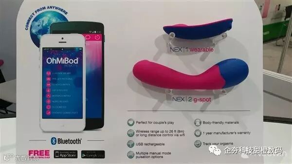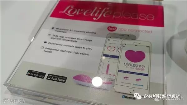 另外一款比较有特点的是Lovelife。这是一款女性可穿戴智能振动器,体积非常小巧,可以通过智能手机来控制震动时间和频率,并能够通过内置的生物芯片来记录每一次高潮的到来。